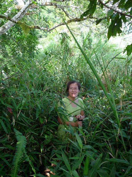 麻煩的還不只這些,割人的芒草長得又高又密,而且到處都是刺人的懸鈎子,我們身穿短袖、短褲,沒有手套、長褲、頭套、圍巾保護皮膚,也沒有鐮刀、鏟子可以除草,所以全身上下到處都有割痕傷口。