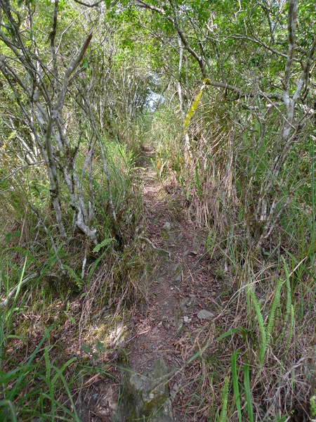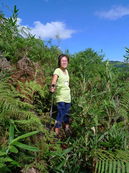 因為路徑不明,登山條又很稀疏,我們沒有GPS指引,也沒有地圖和指北針,老公只好先四處探路,確定看到登山條之後,再回來叫我,走起來很辛苦,而且心裡很不踏實。