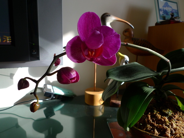 最近老公又從公司「救」了一盆蘭花回來,還特地去ikea買了漂亮的花盆,每天早晚悉心照顧,已經開始長出新葉,期待明年和這盆「ㄅㄧˋ氏蝴蝶蘭」一起開出美麗的花朵。