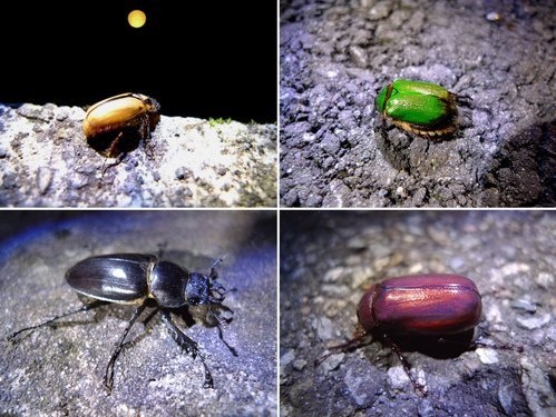 在路燈下陸續發現甲蟲與金龜子。