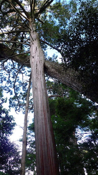步道上很多高聳入雲的鐵杉和紅檜