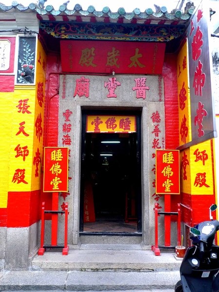 第三間原本應該是建於光緒19年的醫靈廟,可是現在裡面拜的非常複雜:門口拜"張天師",中間大殿是"太歲殿" , 後面是"濟公殿";二樓是又名"睡佛堂"的"醫靈廟"。這裡的寺廟雖小,可是眾神齊聚,感覺商業氣息很濃厚。