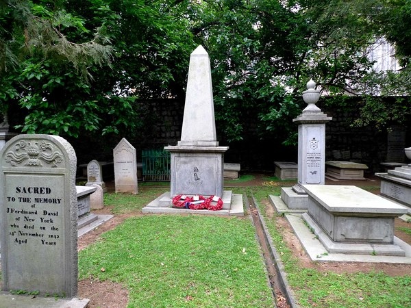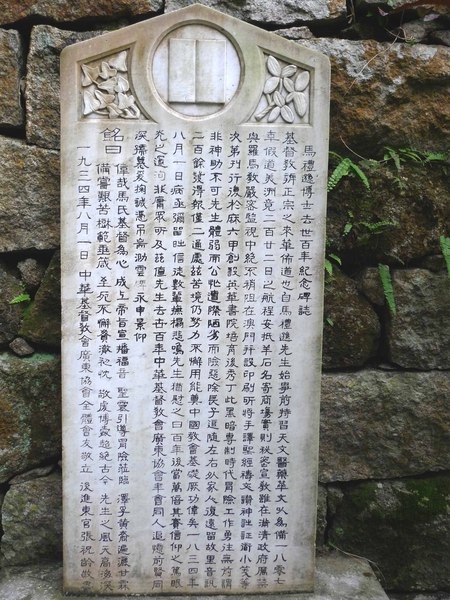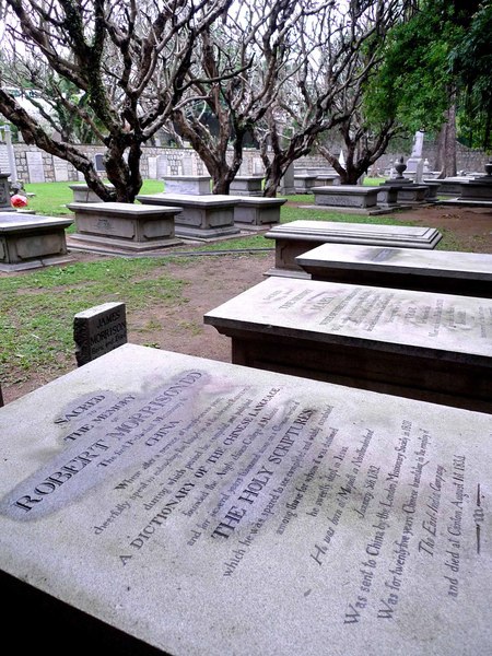 馬禮遜(西元1782-1834年)是第一位來華的新教傳教士,編輯了第一本英漢字典,也是第一個把聖經譯成中文的人,旁邊躺著的就是他的妻子。