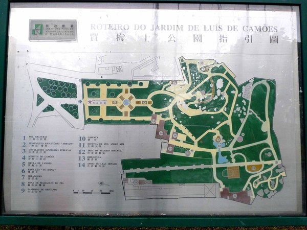 賈梅士石洞:400多年前,葡萄牙詩人賈梅士遭到流放,隱居在公園的石洞中,並且寫下"葡國魂"的部分詩篇,葡國政府為了紀念這位偉大的愛國詩人,將這個石洞稱為"賈梅士洞",設賈梅士的半身銅像。