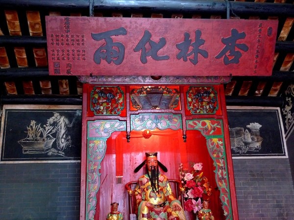 供奉醫靈大帝~華佗,上面高掛"普濟民生"、"杏林化雨"的匾額,"杏林化雨"是咸豐年間所題,可見歷史悠久。