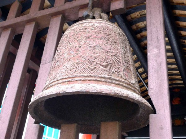 廟旁的古鐘雖已鏽蝕,紋路仍然華麗清晰。