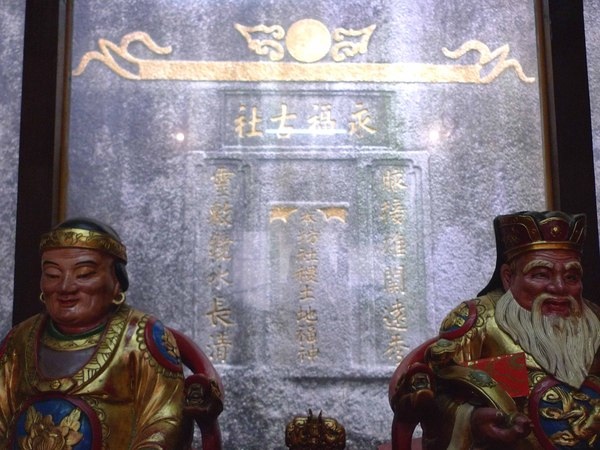 土地公和土地婆後面的石壁上刻著"永福古社"石碑,相當有古味,所以這間廟的全名是"永福古社土地廟",每年農曆二月初二土地公誕辰,都有眾多善男信女到這裡來膜拜。