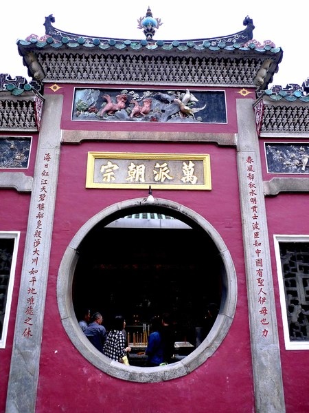 正殿面向大海,殿前月門上刻有"萬派朝宗"的字樣。