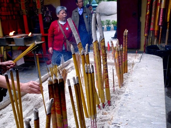 走入殿內,信徒祝禱用的馨香一炷比一炷粗大,似乎香越粗,願望就越容易實現的樣子。