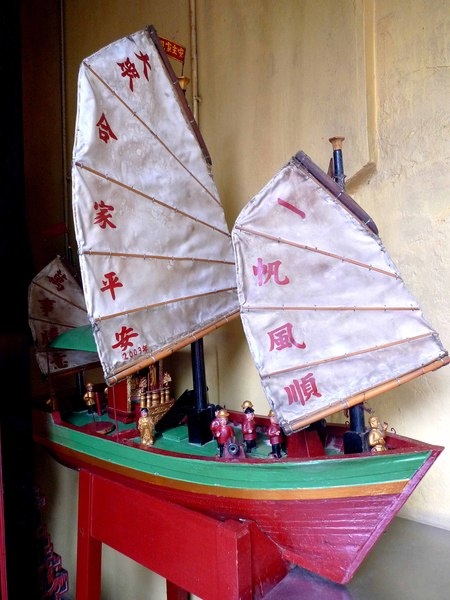 裡面擺著很多看起來就很古老的東西,還有可愛的小神轎,和這艘帆船,上面還有可愛的小人偶,很像小時候玩的樂高玩具。