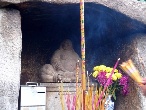 下山路上還是很多的石刻,而且只要有佛像就香火鼎旺。