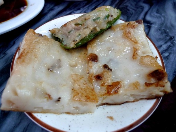 最後,回座位之前經過蒸盤區,忍不住又各點了一份蘿蔔糕和青椒肉餡,好心的小姐自動幫我改為湊成一份(15元),不然我們倆真的會吃到撐爆。