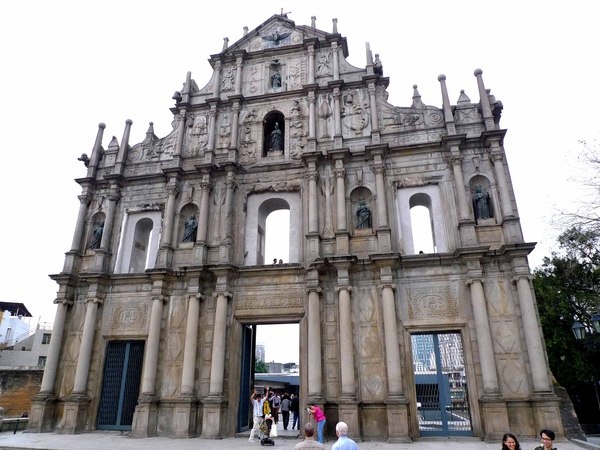 後來耶穌會被迫離開澳門,教堂變成軍營,西元1835年1月26日的最後一場大火,足足焚燒了兩個多小時,整棟教堂付之ㄧ炬,所幸教堂前壁仍屹立不倒,成為現今世界聞名的聖保祿教堂遺址,本地人覺得教堂前壁很像中國傳統的牌坊,所以將它稱之為『大三巴牌坊』。