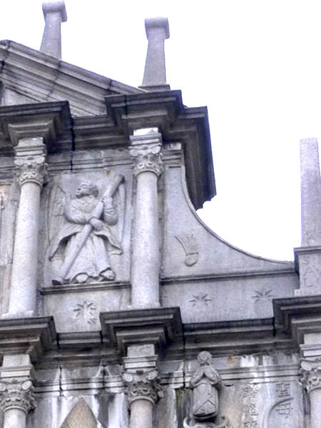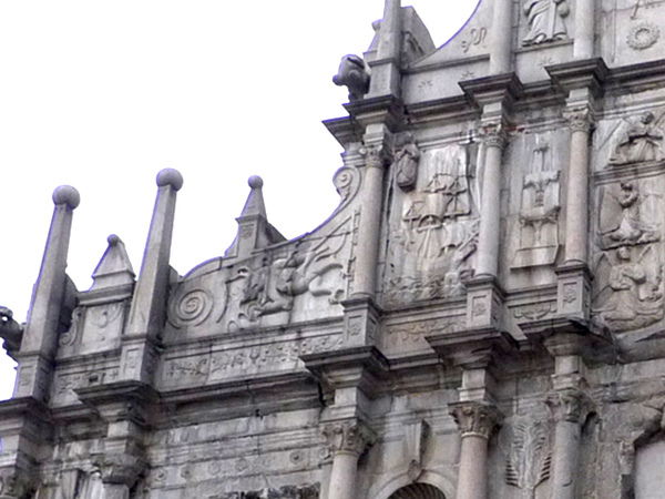 大三巴牌坊高27.0m、寬23.5m、石壁厚2.7m,屬於矯飾主義