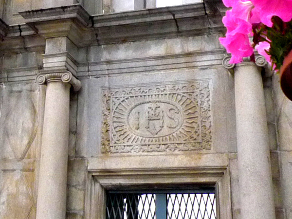 兩邊側門門楣上刻有耶穌會的會徽「IHS」圖案,象徵耶穌基督為人類的救主。