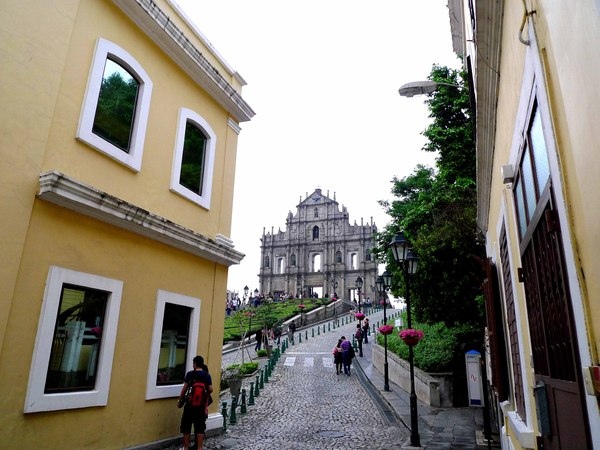 離開前我們從旁邊寧靜窄小的「大三巴斜巷」回望『大三巴牌坊』。