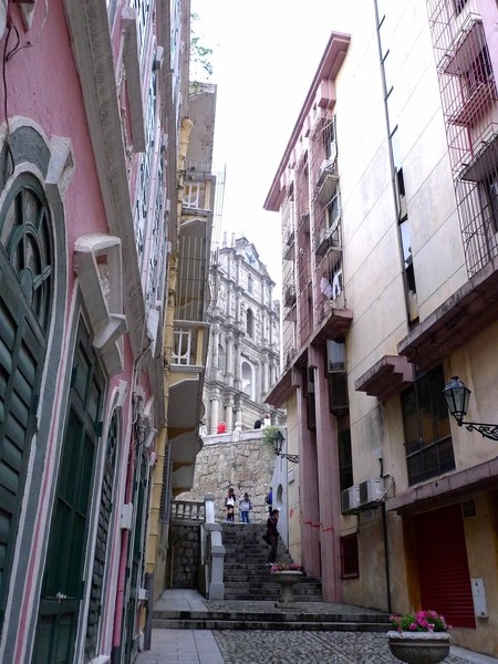 或者是,到大三巴牌坊約會完,一彎進小巷,走下階梯,就擺脫了擁擠的人潮,正是談情說愛的好地方,加上旁邊的建築氣氛如此浪漫,有如置身歐洲,名為"戀愛巷"果然名符其實。