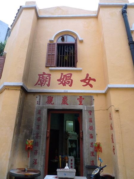 到了"草堆街"右轉,好小的巷子,幾乎是台灣防火巷的寬度而已,路口一間很少見的「女媧廟」,建於清光緒14年(西元1888年)。