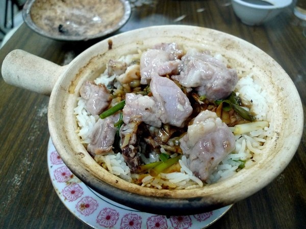 老公的"排骨煲飯加田雞(35元)"先上,鍋巴比較少,醬汁也比較多。
