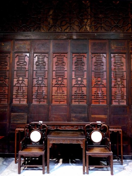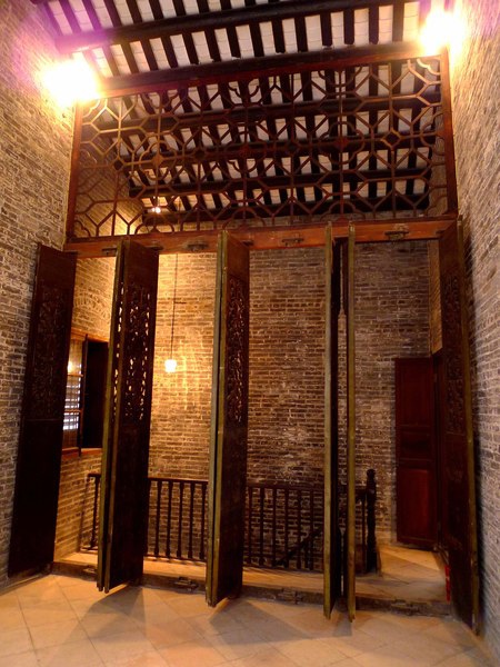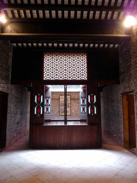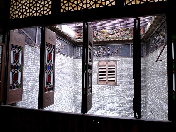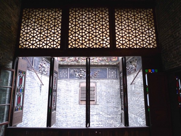 轎廳和正廳前的天井之間有"滿州窗"屏風保護隱私。