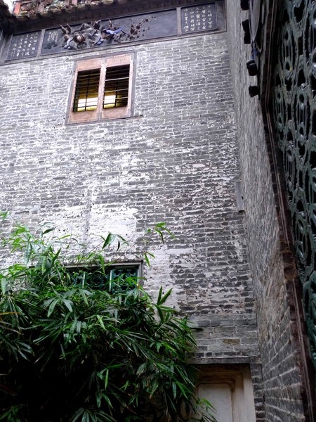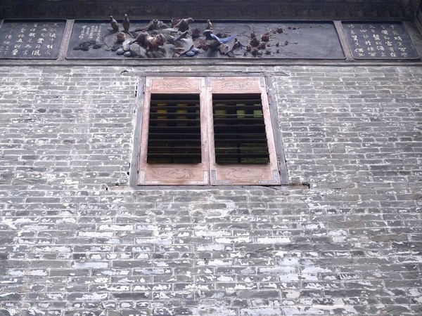 外牆:以水磨青磚砌成,手工精密,光滑細緻,老百姓說是"銀元"磨成的門面,可見所費不貲。為了避免太陽直曬屋內,刻意砌成高大的屋牆,顯得氣派非凡。
