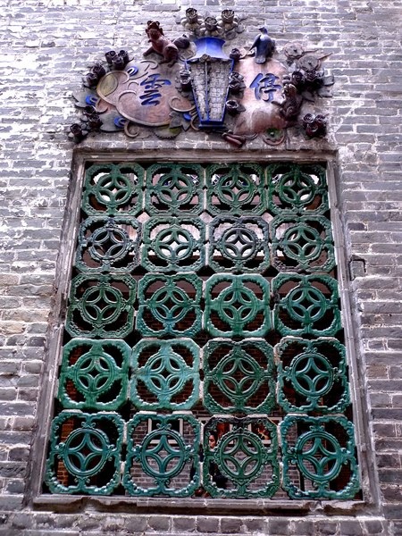 這一扇窗上半部呈六角型龜殼狀排列的就是"蠔殼窗",又叫"明瓦窗",是用產於沿海淺灘的貝殼所製成的窗戶,透光良好且耐用。