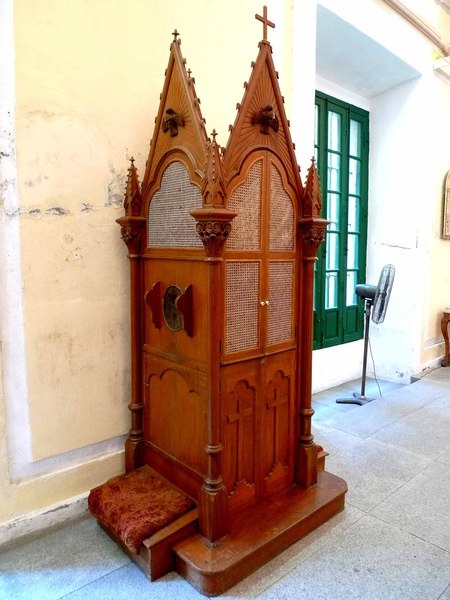 據旅遊指南中說明,教堂旁的"聖物寶庫"收藏三百多件澳門天主教十七、十八及十九世紀的雕塑、畫像、服飾及器具等珍貴的宗教藝術品,只是此時似乎有祈禱活動,不太適合我們參觀拍照,還是前往下一個行程。