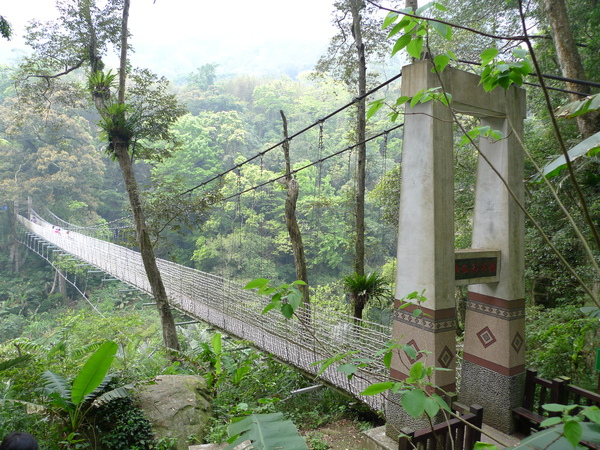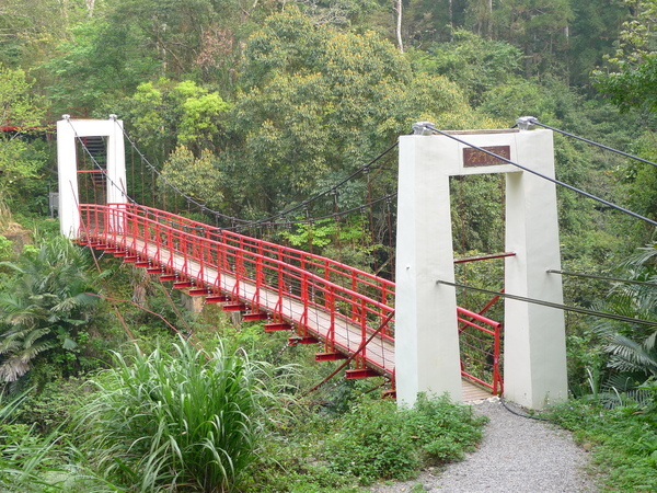 「神仙谷吊橋」,橋的兩邊飾有泰雅族圖騰。