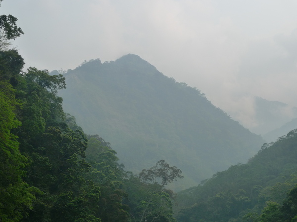 從橋上往河的上游望去,又再次見到山形尖聳的「加里山」。