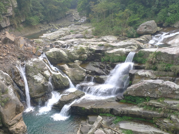 中間錯落的石塊岩縫又形成許多小瀑布,氣勢磅礡,水聲轟隆,非常壯觀。