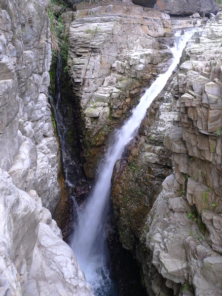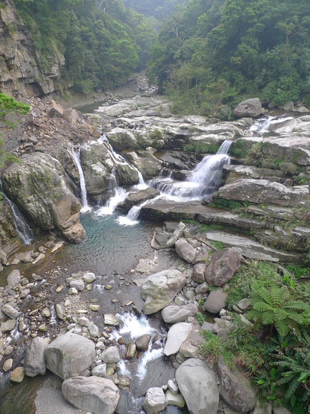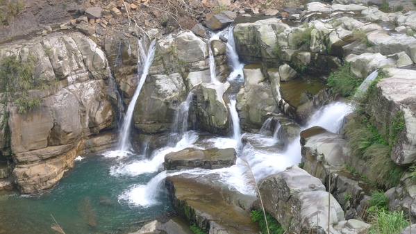 砂岩河床又在此陷落產生斷層,因此形成這一道落差十多公尺,呈階梯狀的神仙雙瀑。