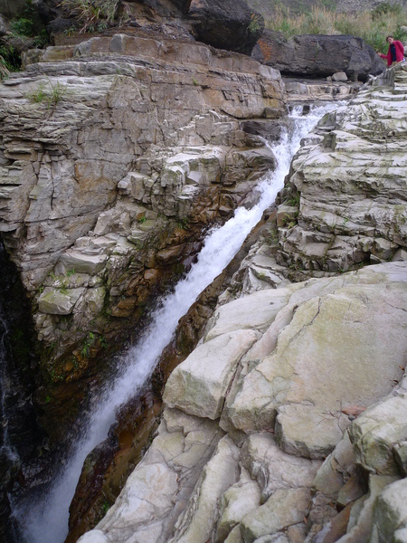再往前走,遠遠眺望「比林溪斷崖瀑布」,小情侶還在那裡。