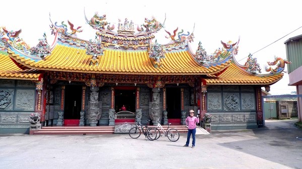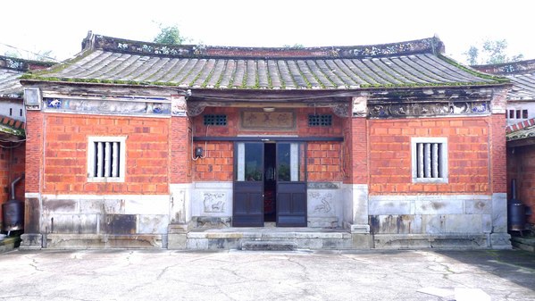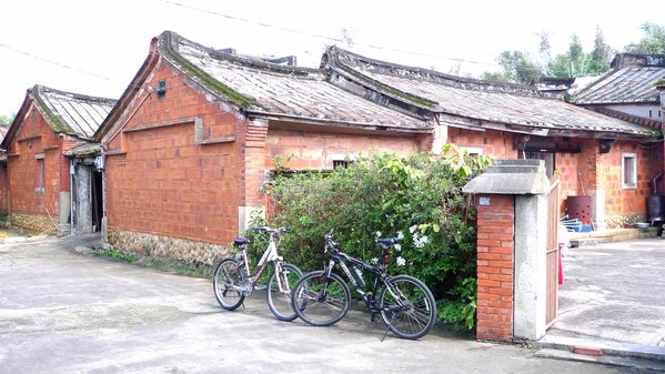 單車道接近終點時,右手邊的典雅三合院古厝,喜歡這種磚牆的味道。