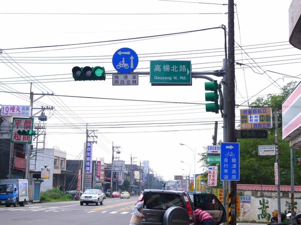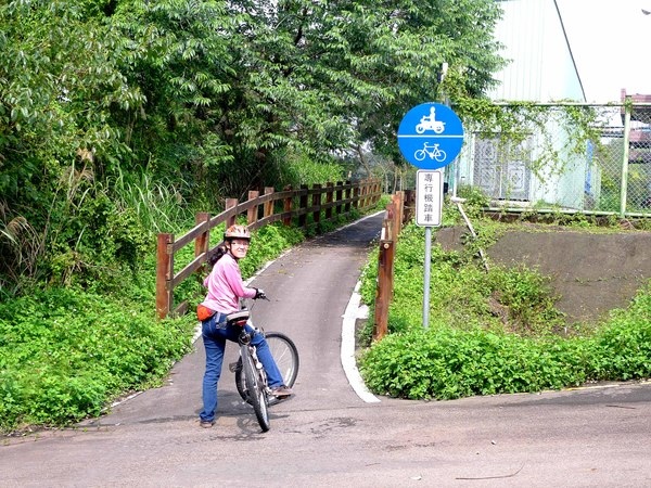 離開自行車道之後,左轉可以接上三林自行車道,我們選擇右轉,沿著山路一直上坡,打算接往高原自行車道,可是老婆的後變速線壞了,爬坡騎到鐵腿,只好下來推車,還真有點陡,終於接到台3線,左轉一小段,到了高楊北路右轉,跟著自行車道指示走。