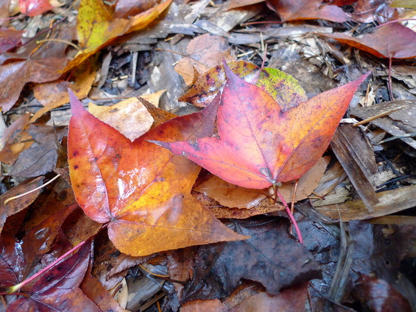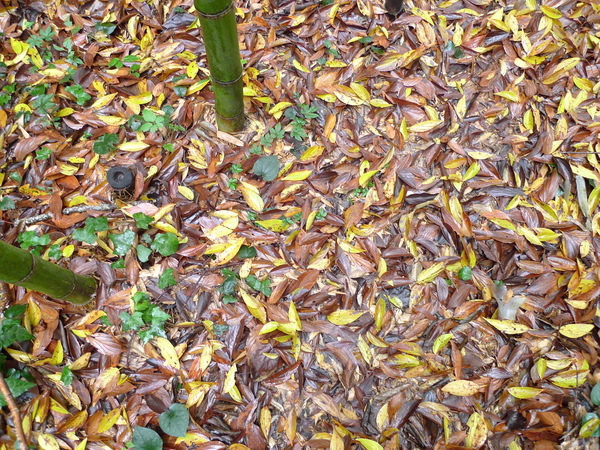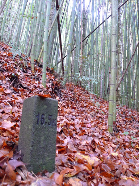 馬鞍往前一小段16.5KM處遇到成片的竹林,地上堆滿紅葉。