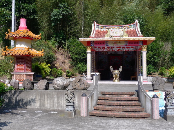 我們今天的交通工具是紅色小迪,管理的北北要我們往上騎到機車停放區(免費),旁邊是土地公廟--石福宮,我們沿著山路上行,出發了!也因為如此的陰錯陽差,讓我們誤認[右去左回]的登山步道是由此開始(後來下山後才發現原來右邊的登山步道是在汽車停車場收費亭的右側,照相照到了,眼睛卻沒看到,傷腦筋!),結果竟走了左去右回的難走路線。