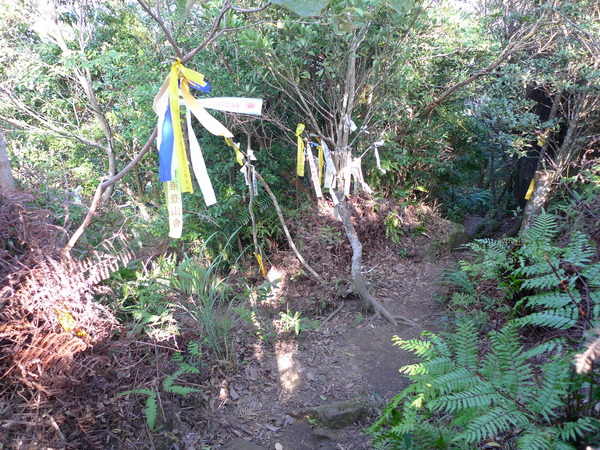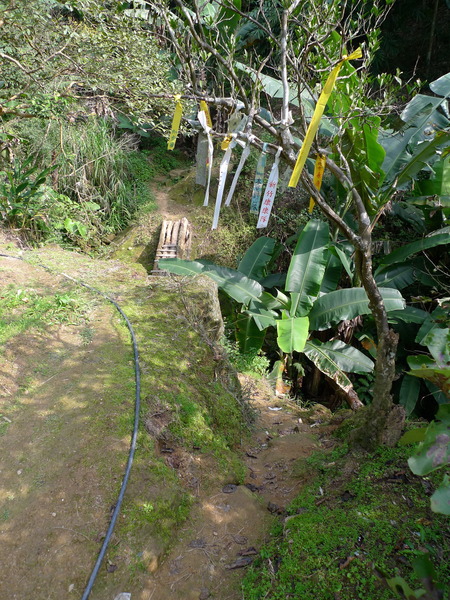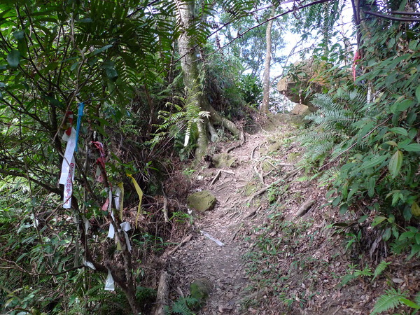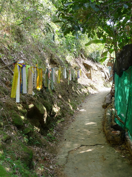 走過民宅,右側山徑綁滿登山條,想必是[右去]的路線準沒錯。(其實這條路線是左去原路來回的大眾路線)