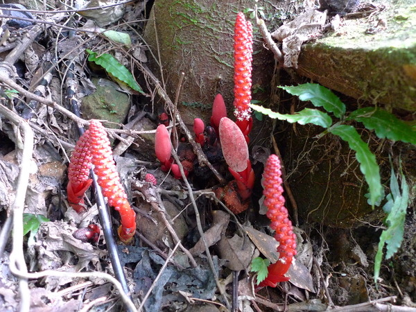 準備要靠邊讓路時,發現在山徑旁生長著寄生植物"穗花蛇菰"