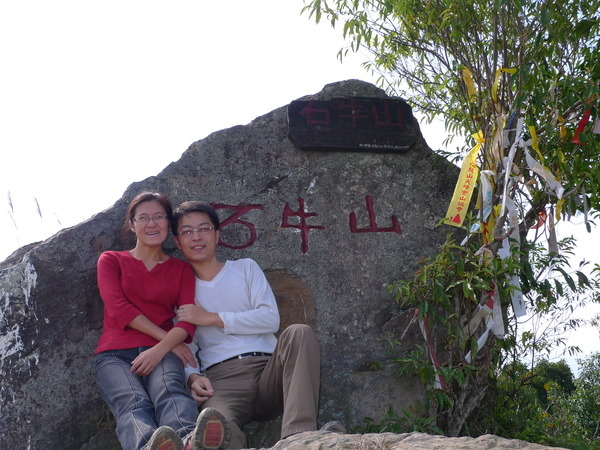 當地人習慣稱大石頭為"石牛",石牛山以多岩石而得名;這塊石頭形狀特殊,有如牛背,叫做"石牛山"也是名符其實。而我們兩人覺得:這一路爬坡,走得我們腿硬如石,氣喘如牛,難怪叫做"石牛山。