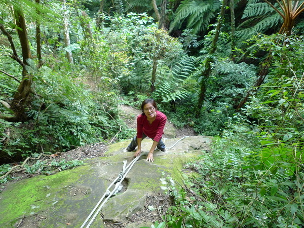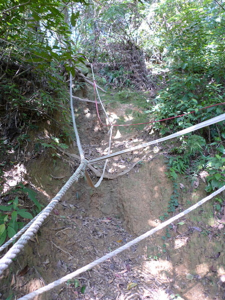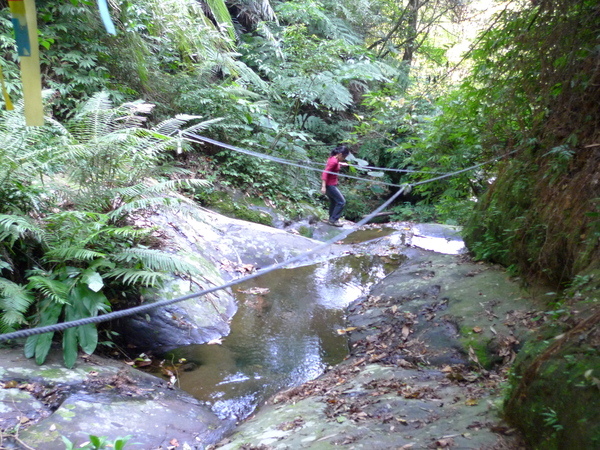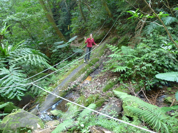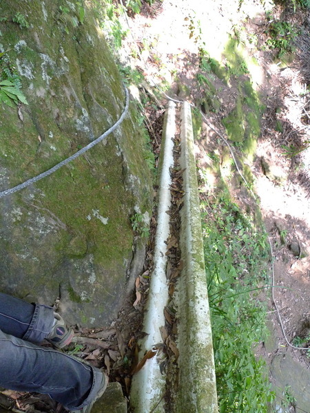 沒想到還有這種:沿著繩索,忽左忽右,慢慢走下一層一層的水道,若是走這邊上山,應該也是很辛苦,不會輕鬆到哪去吧!