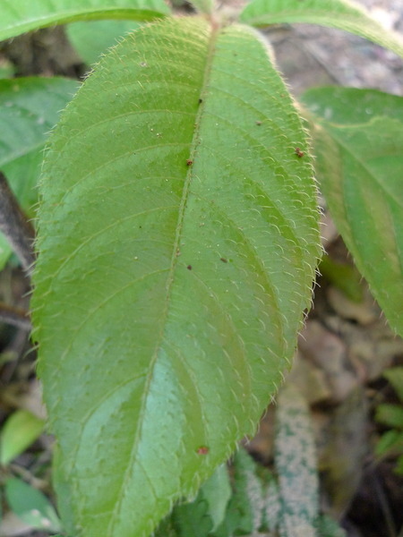 乘機給老婆機會教育,此植物看起來平凡無奇,可是葉面上佈滿焮(ㄒㄧㄣˋ)毛,萬一不慎碰到,那可是人間慘劇啊!