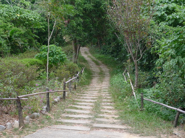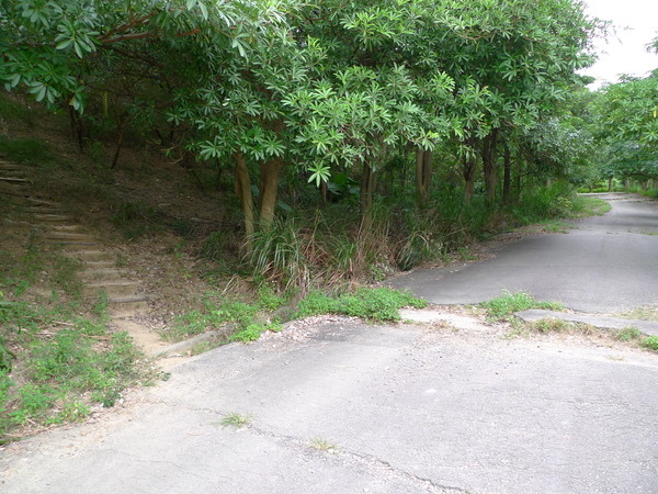 沿著柏油道路往前走,看到左側階梯就抄捷徑往上走。
