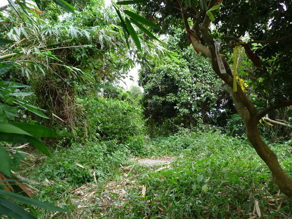 鋪著紅磚的步道,兩側是荔枝園,還好此時非結實纍纍,否則.......