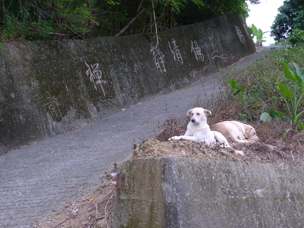 沿著水泥產業道路,回到山腳下,路口的小狗悠閒的趴著休息,而我們也完成了下午的豋山行程,吃大餐去也!