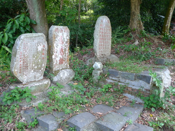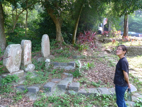 走到第一停車場附近,三叉路口的左側,可以看到感應橋的遺跡及三塊碑石。