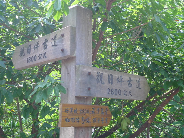 右邊叉路往觀日亭250m,左邊叉路往飛鳳夕照2000m,我們決定先往觀日亭。