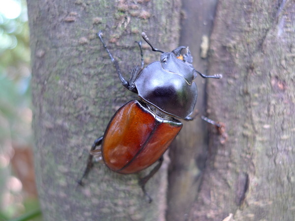 此時正是紅圓翅鍬形蟲的繁殖期,沿路都會看到牠的身影,希望牠們能逃過獵食者與小朋友的毒手,順利繁殖下去。