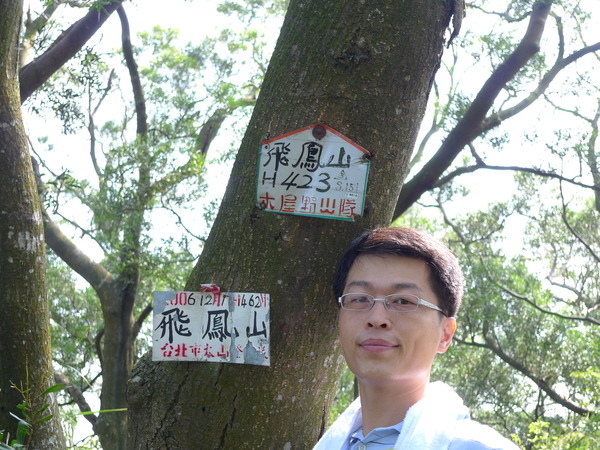 相思樹上掛有飛鳳山H426m標示牌,小百岳No.027。