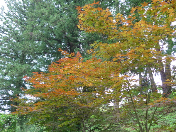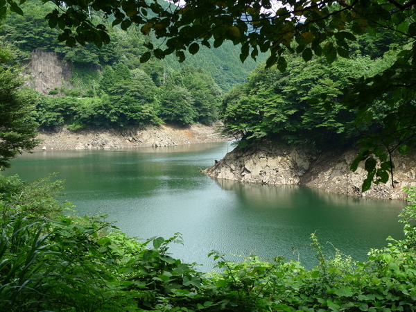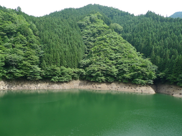 續往前行不久,看到往「みどり湖 」的指標,看著路邊的說明牌,大概意思:「在昭和45年時,因爲建設水庫,有兩個集落沉入湖底,……」現在還看得到泡死淹死的枯木群。