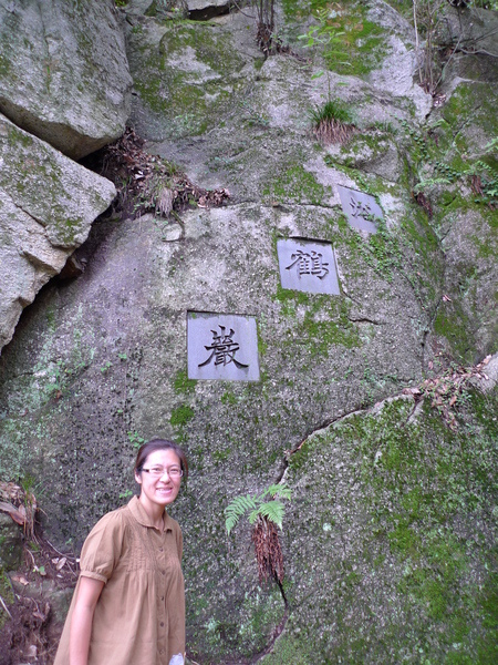 西元1882年,書法家日下部鳴鶴在造訪天龍峽時,選了十塊岩石,在岩面上親自書寫並刻上文字。首先我們遇到「浴鶴巖」。